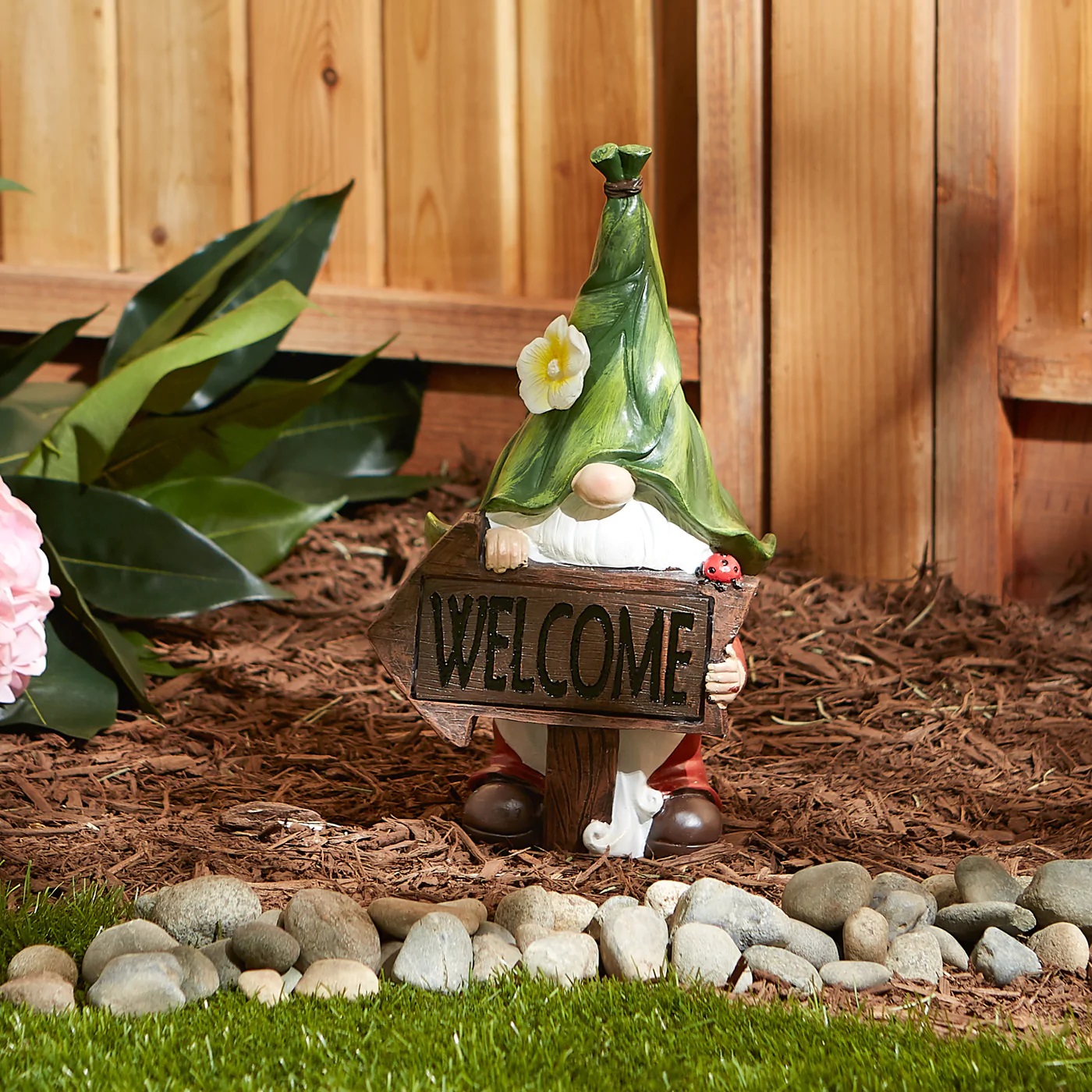 GNOME WITH GLOWING WELCOME SIGN SOLAR STATUE