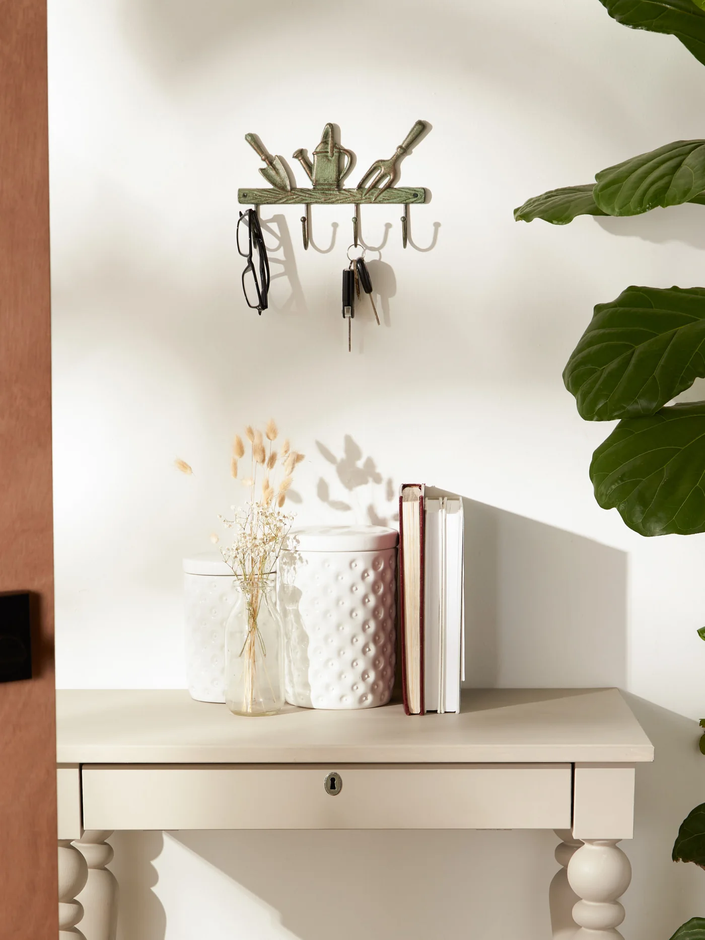 Hang keys, garden tools, gloves, jackets and sweaters on these wall hooks. Perfect for both indoors and outdoors, this stand will look good anywhere in your home from a statement porch piece, sunroom storage, garden enhancement or patio accent.
